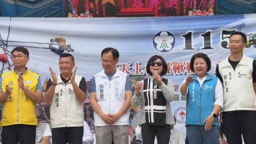 圖說:全台獨「嘉」,與北天燈、南蜂炮齊名,傳承超過200年的嘉義市鞦韆節於今(18)日在嘉義市光路里武當山玄天上帝廟廟埕熱鬧登場,嘉義市長黃敏惠帶領市府團隊出席,嘉義市議會議長陳姿妏也與多位議員及嘉義市長参選人張啓楷等一同參拜並祈求國泰民安。(記者吳瑞興攝)
