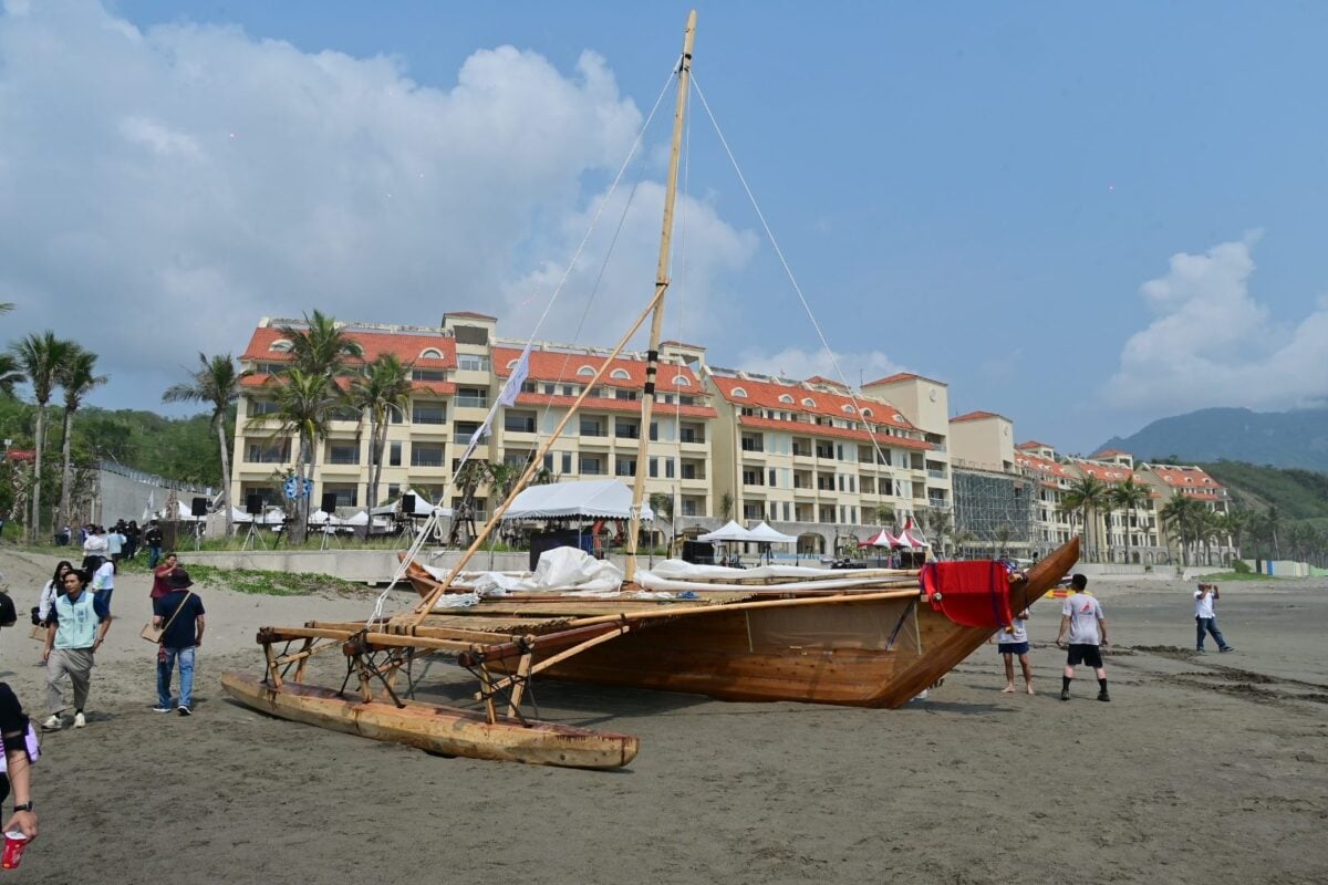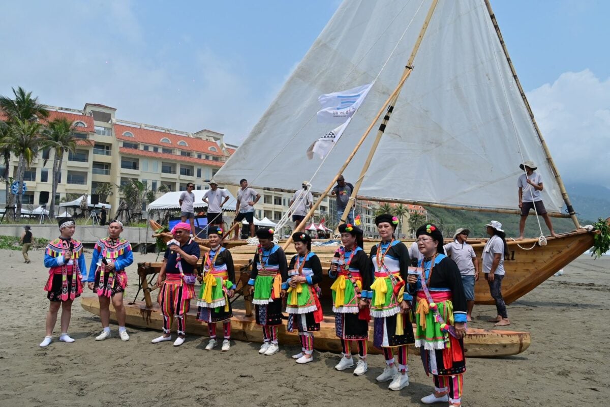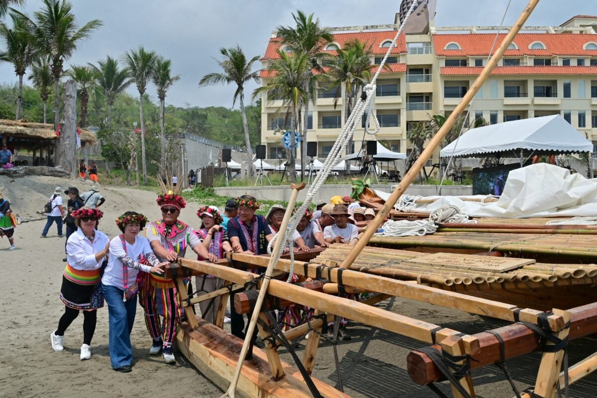 雅美/達悟族造船師謝福生以傳統tatala拼板舟技法,製作上百根木釘固定船體;莿桐部落fudafudakan船團團長Cinaw劉裕義則利用刺竹、麻竹與黃藤,將阿美族傳統竹筏編綁工法加上帛琉Nick Halishluw的造船工藝,融入舷外浮桿平台,造就「跨越語言、文化與海洋」南島之舟,今日除進行傳統祝禱與下水儀式外,同步舉辦舟船命名揭牌典禮。