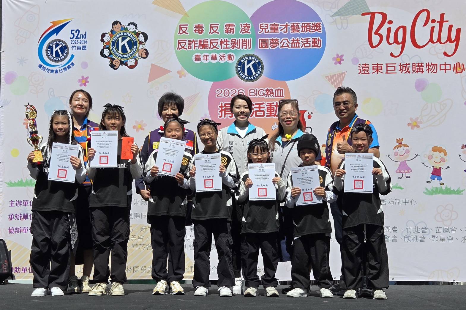 【民眾新聞網方健龍新竹報導】為推廣公益服務精神,並提升社會大眾對血液捐贈及兒少保護議題的重視,國際同濟會台灣總會竹苗區今(19)日在新竹遠東巨城盛大舉辦「同濟有愛 BIG 捐血」暨「同濟嘉年華」公益活動,市長高虹安特別應邀到場頒發兒童才藝比賽優勝得主,活動同時結合捐血行動與反毒、反霸凌、反詐騙及反性剝削等多元宣導內容,透過寓教於樂方式,打造一場兼具公益與教育意義的親子活動。