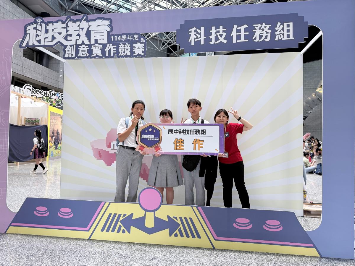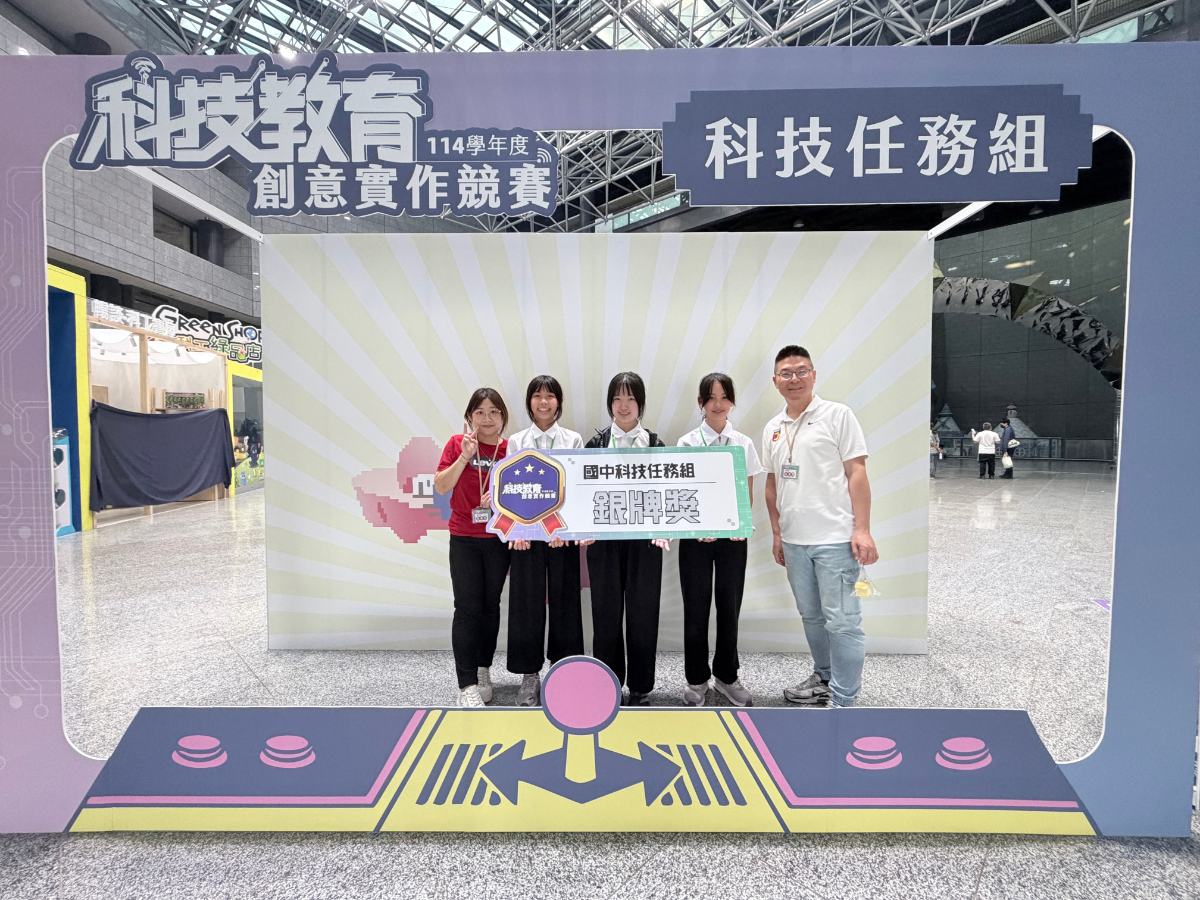 國中部陳育蒼主任說,科技教育創意實作競賽是由教育部國民及學前教育署主辦,國立臺灣師範大學、高雄師範大學、科學工藝博物館共同承辦,參賽團隊在楊鎮澤主任、諶瑀涵老師指導下,憑藉豐富創意與扎實訓練脫穎而出,難能可貴。