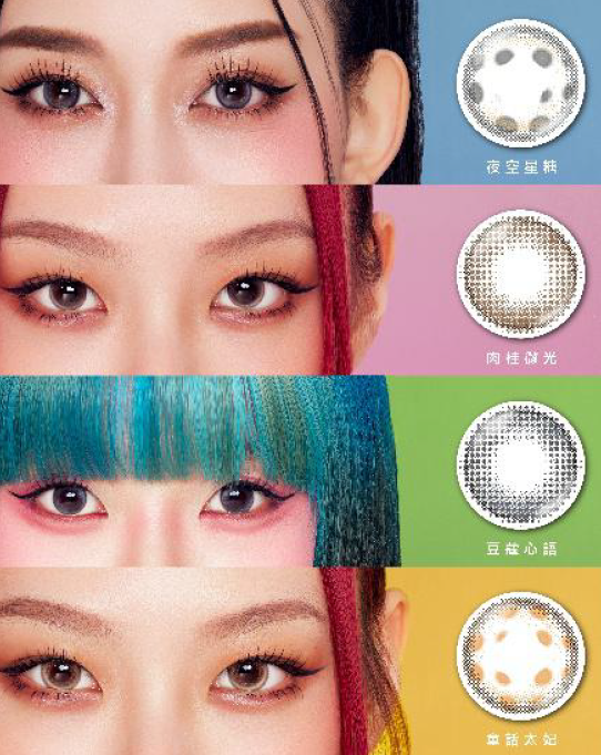 本次推出款彩色日拋款式多以 13.3 mm 著色直徑為主要設計基準,著重於眼神輪廓的平衡呈現。在維持自然感的前提下,透過色彩與層次設計,採用三層包覆隔色技術,將色料鎖於