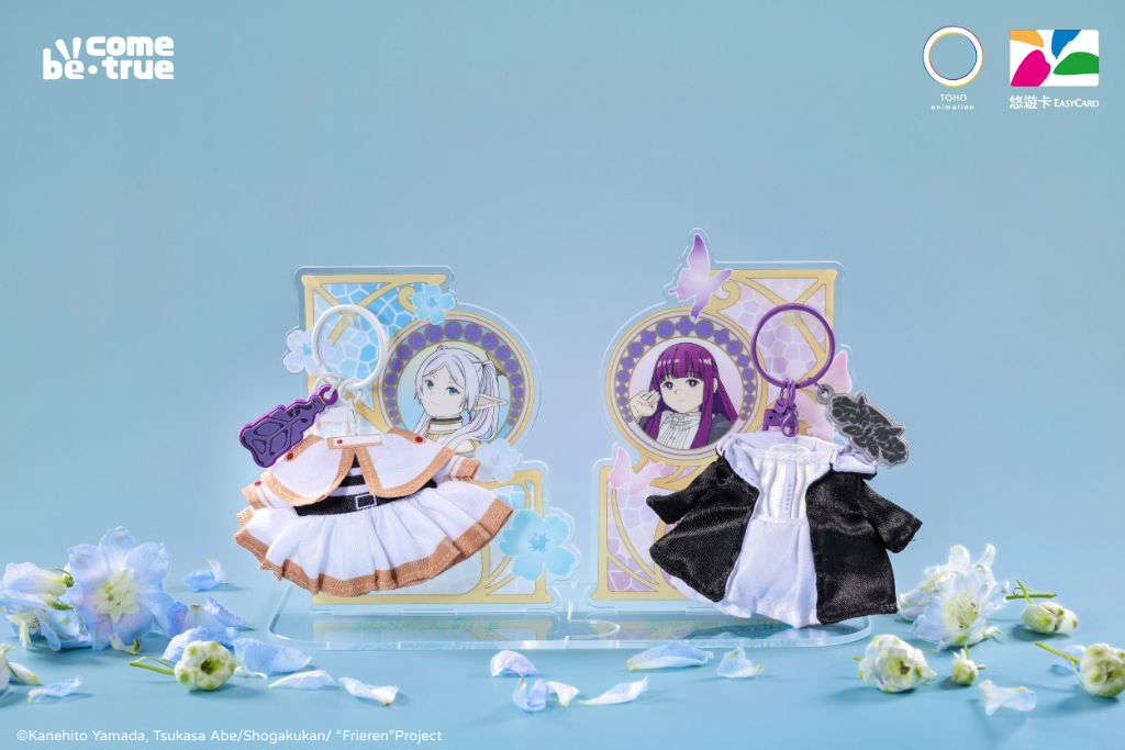 年首播以來,《葬送的芙莉蓮》不僅以細膩的角色描繪與深刻的情感敘事累積高人氣,芙莉蓮、費倫在旅途中熱衷蒐集「尋找丟失飾品的魔法」、「將衣服的髒汙澈底清除的魔法」等貼近生活的實用小魔法引發粉絲共鳴,直呼:「根本就是生活智慧王」、「我也好想學這個魔法!」本次新品靈感正是將這份「生活魔法」實體化,推出芙莉蓮與費倫的迷你服裝悠遊卡。柔軟布料搭配經典飾品吊飾,完美還原師徒兩人的冒險身影,並皆附一組專屬壓克力立牌架,就像幫芙莉蓮和費倫「掛衣服」,成為最特別的收藏品之一。