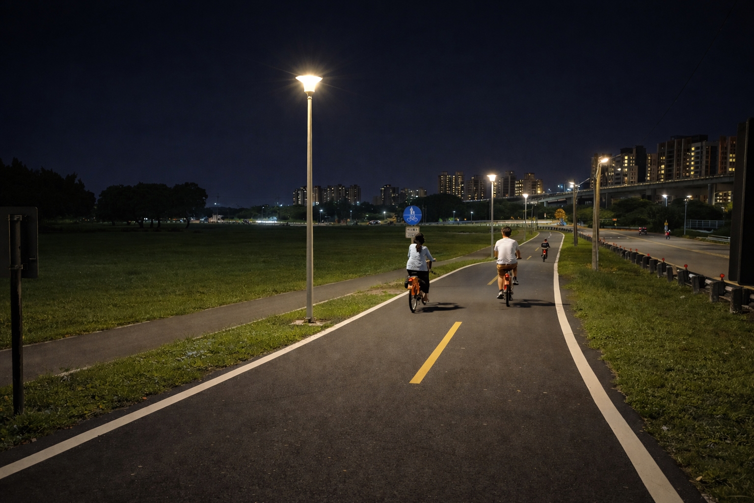 此外,配合近期疏左堤防加高工程完工,通往淡水與八里方向的自行車道已順利重新串聯,河濱路網更加完整順暢。五股濕地作為銜接淡水與八里的重要節點,透過此次燈桿更新與動線優化,進一步提升整體通行品質,無論日間或夜間,皆能提供連續且安全的騎乘與步行環境。
