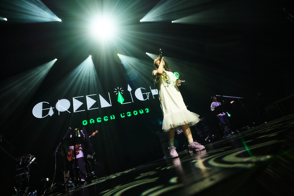 Viridiand〉作為主篇章收束,完整呈現《Green Light》的故事輪廓。她也不忘趁機宣傳,俏皮笑說自己參與開發的《Green Light》遊戲在steam、兩大行動平台iOS 與 Android都可以免費下載,也有開發中文版本,請大家不只享受音樂與現場演出,務必要試玩看看,可愛模樣讓全場高聲答應。