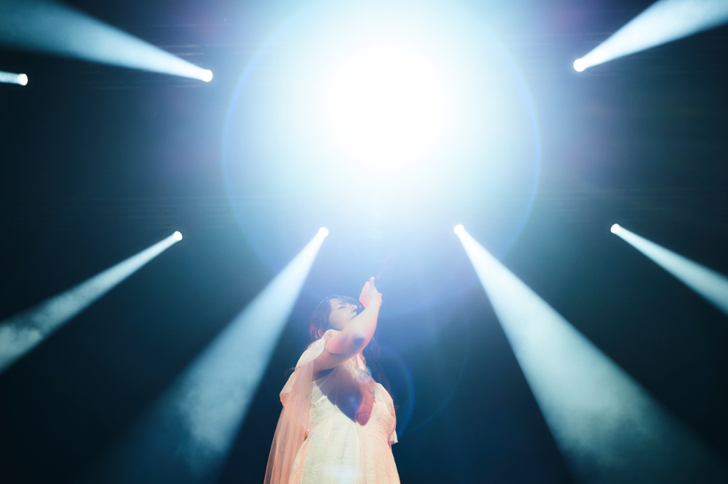 Light」為yanaginagi音樂活動14週年的重要企劃之一,延伸自同名專輯與同名原創遊戲設定,透過現場演出將虛構世界具體化。相較過往以單一主題構成的演唱會,本次更強調敘事連貫與跨媒體整合,展現她近年創作方向的轉變。演出開場時,yanaginagi身穿白色荷葉邊紗裙絕美登台,在白綠交織的燈光下,以主打歌〈Green Light〉揭開序幕。