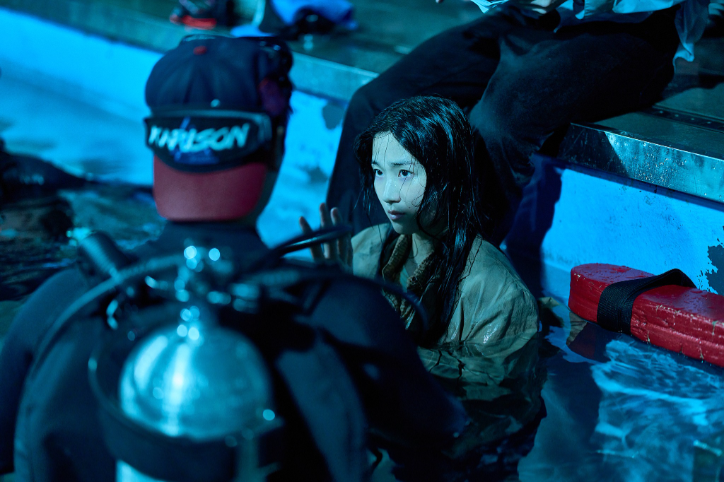 ▲ 《背著善宰跑》金惠奫為《殺木池》學潛水。(圖:車庫娛樂)
