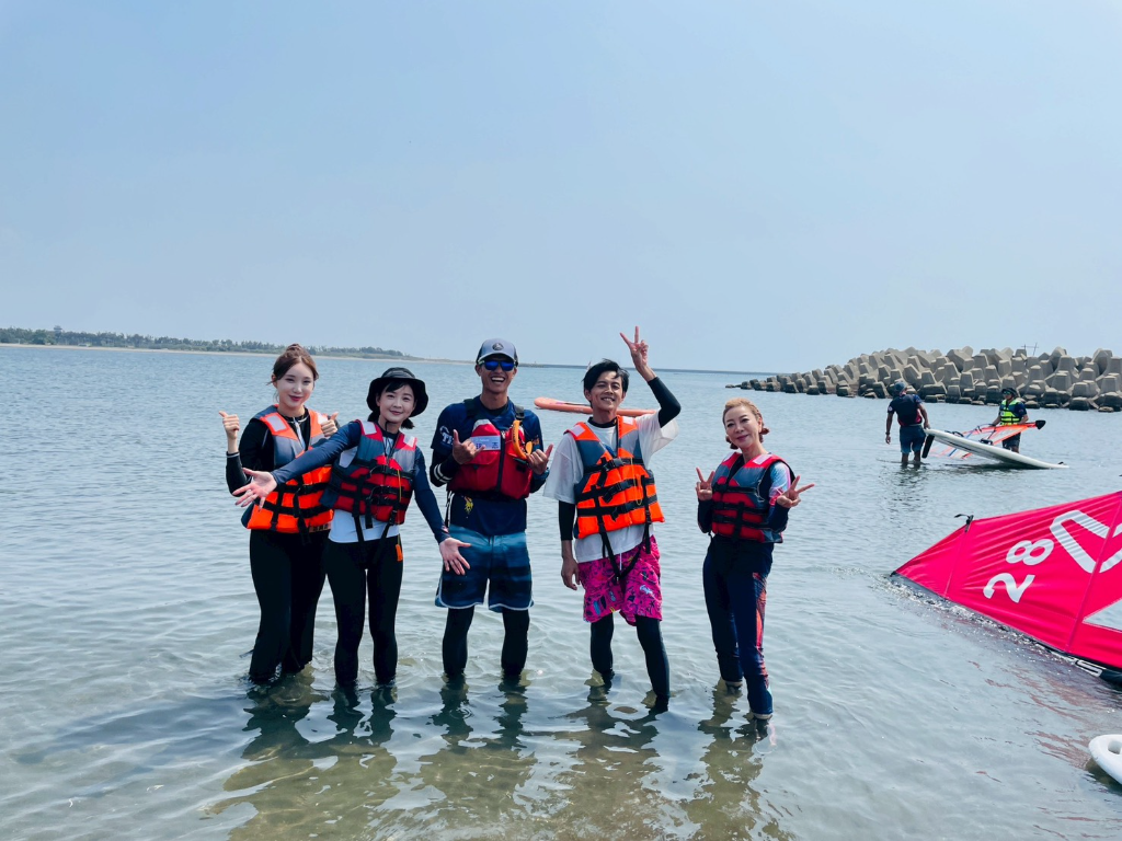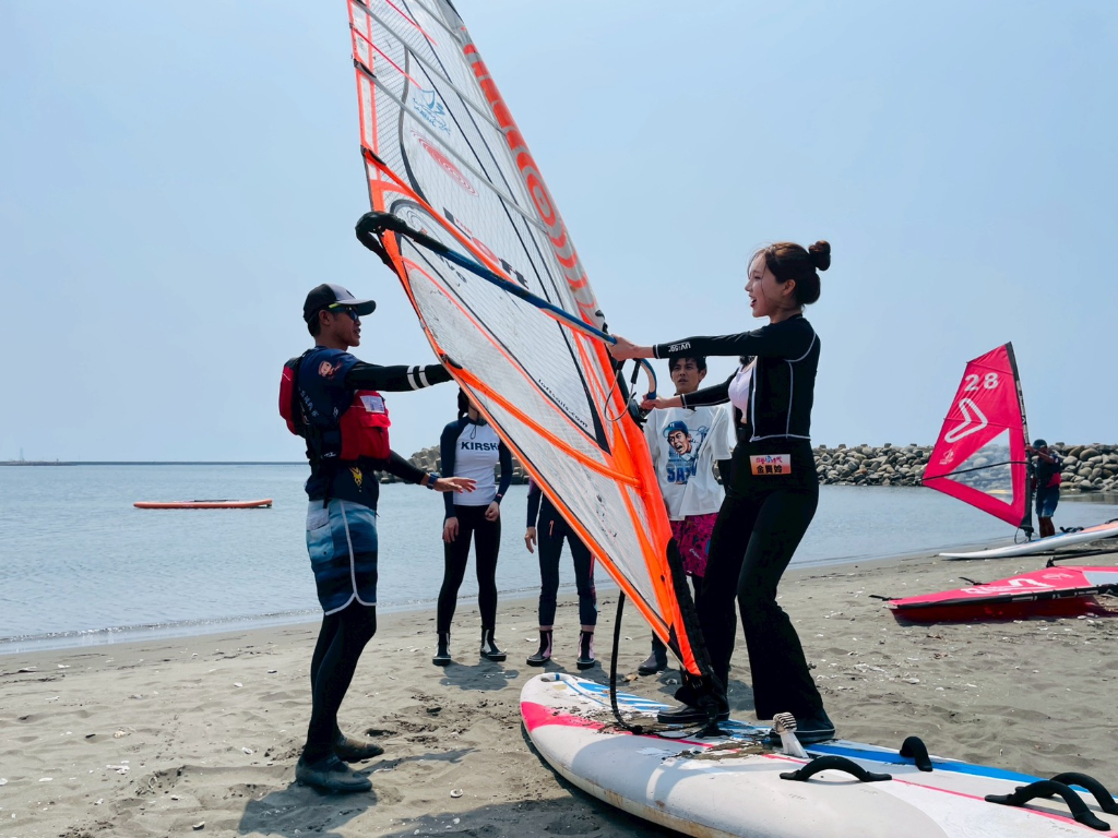 來到漁光島體驗被稱為「20世紀最好玩的水上運動」的風浪板,原本大家還以為只是衝浪板加上一片帆,沒想到真正站上板子後,不但要隨時抓風、維持平衡,還得學會跌倒時保護頭部,金賢姈雖然一開始自稱玩過一次,是大家的「學姐」,但真正下水後還是緊張到頻頻尖叫,反倒是籃籃和阿翔意外迅速上手,成功在海面上穩穩前進,帥氣模樣讓岸上的人狂拍手,籃籃更笑說:「當你真的抓到方向,就好像可以駕馭風,也找到人生的方向!」