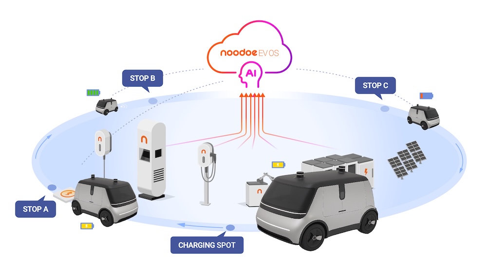 設備的自主化順利運作,需要仰賴一套強大的營運平台進行調度與管理。柯勝峯指出,無論是數十台清潔機器人、無人機機隊,或是校園內的自動駕駛車輛,充電補給都是這些系統持續運行的最大瓶頸。如何根據場域電網的極限,自動調配每一台載具的充電順序與時間,考驗著後台管理系統的運算能力。提升Noodoe現有電動車雲端作業系統,就可接軌這些新型態的自主化載具,提供高度自動化的能源與調度解決方案。