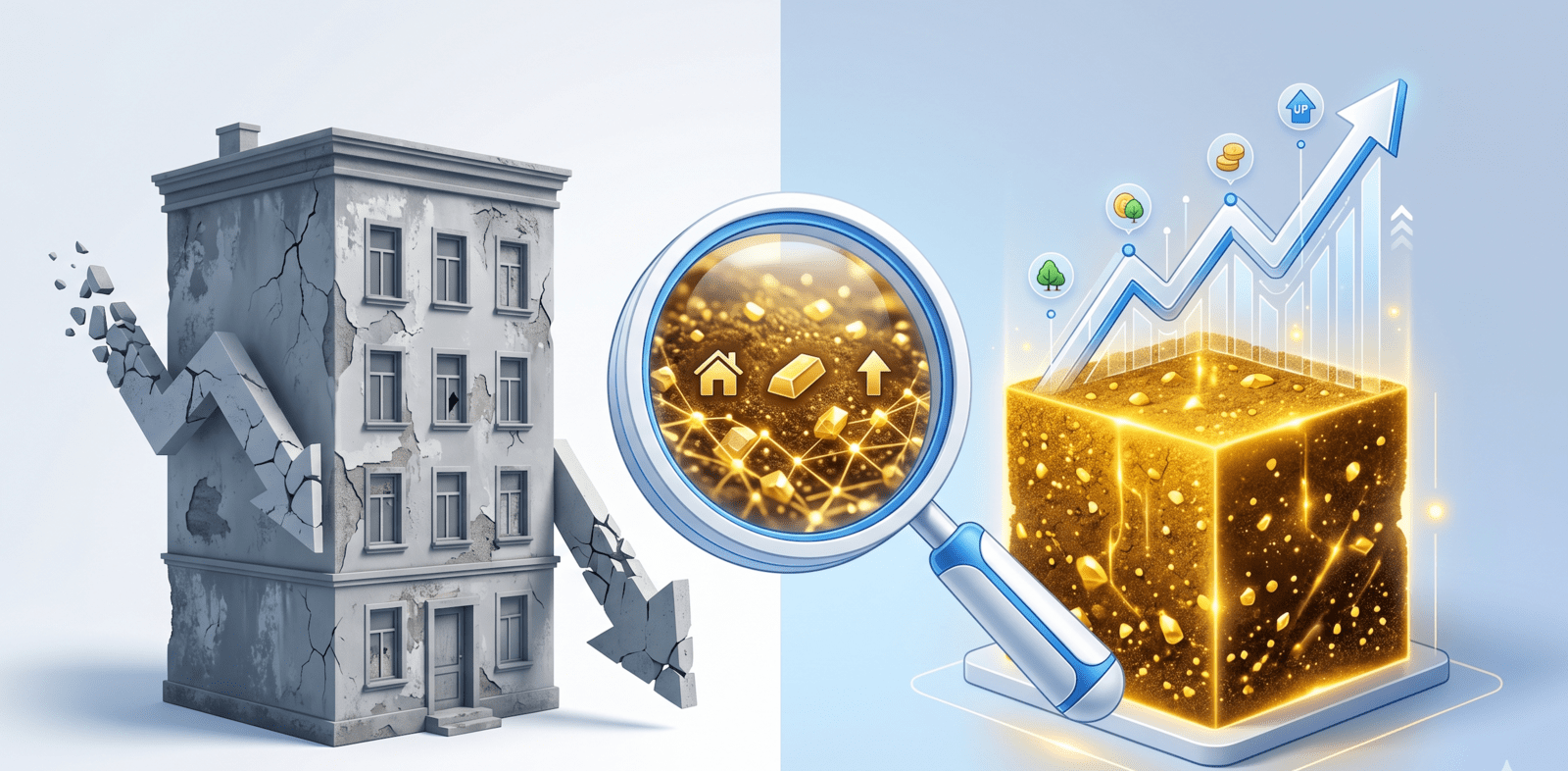 內行買家看老屋,買的是那塊「地」。當建物屋齡超過 40 年,在銀行估價與市場實務中,建物價值已趨近於零,甚至可能因未來需負擔拆除費而變為負資產。