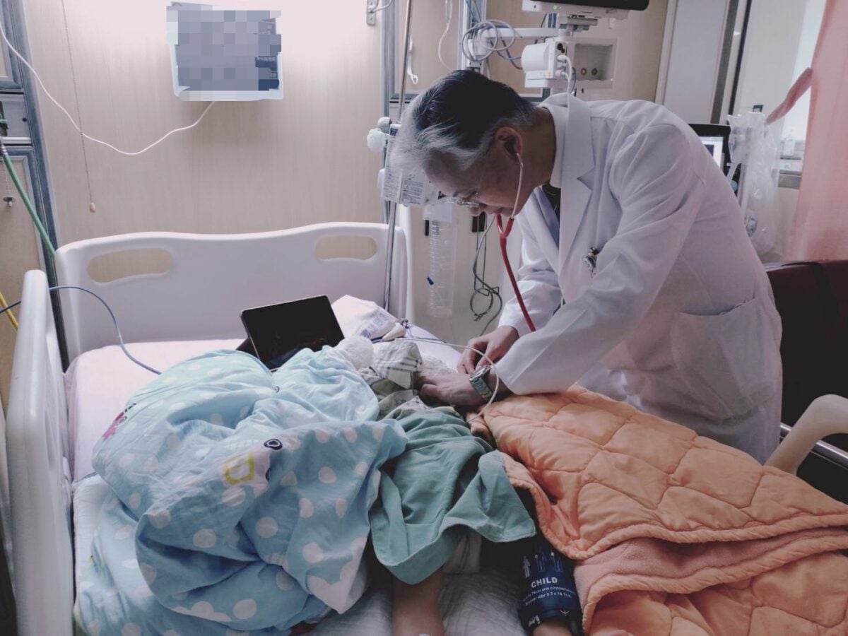 ▲傅雲慶院長評估女嬰術後恢復狀況。