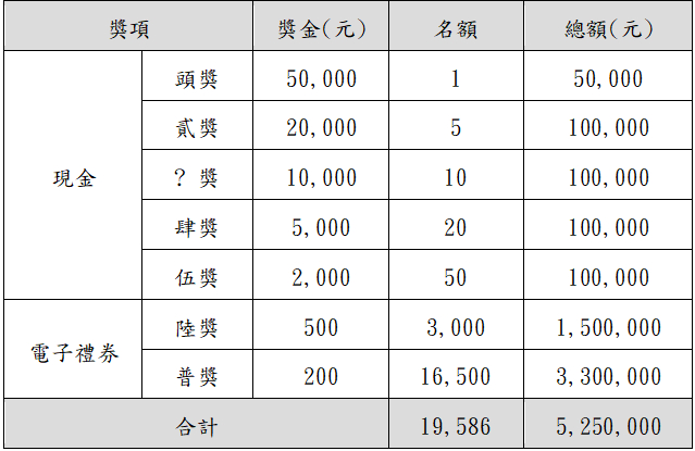 手機報稅抽獎活動預訂於115年8月中旬抽出19,586位獲獎幸運兒,活動獎項及名額如下: