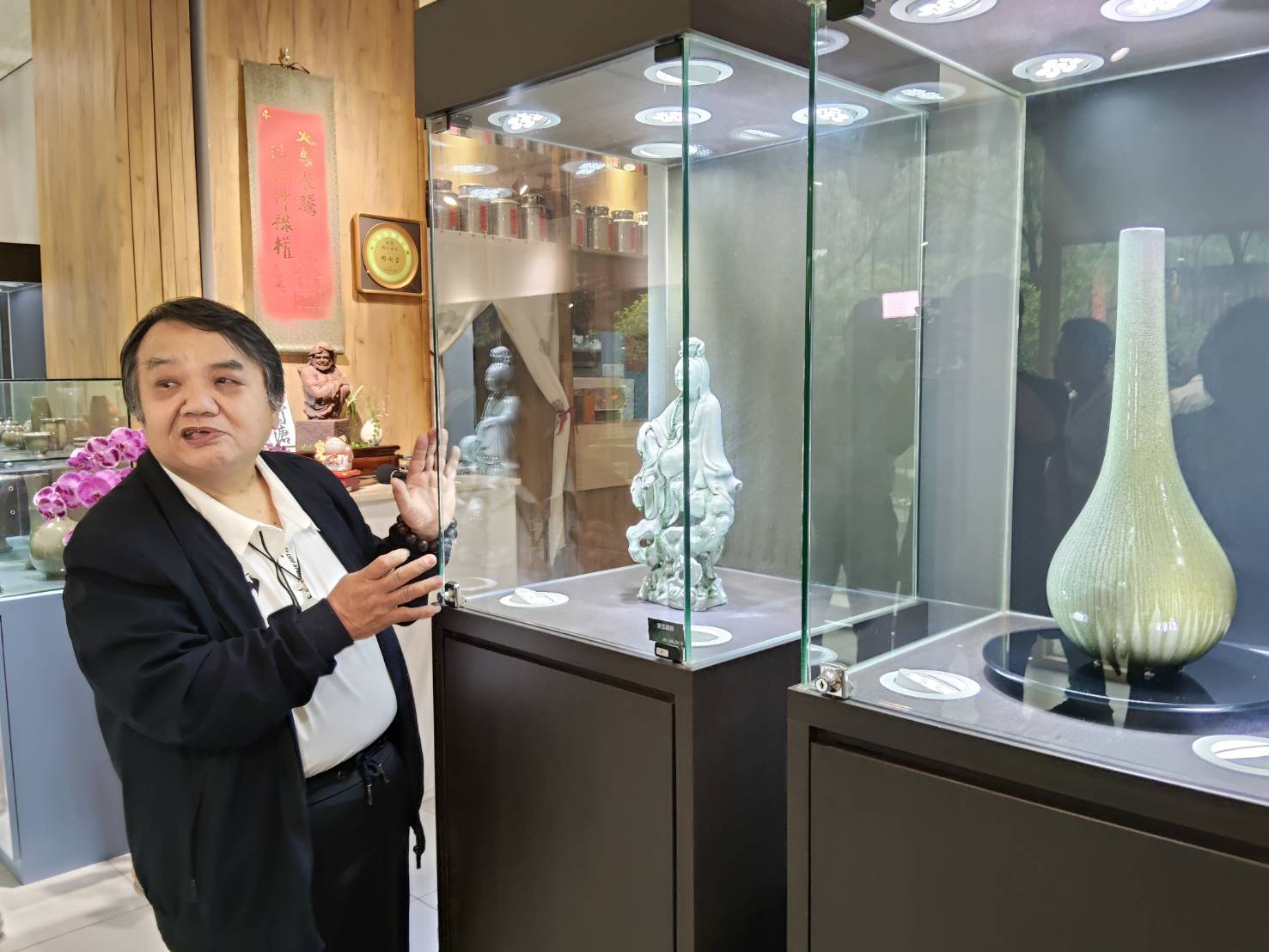 雅園溏人文藝術空間董事長張秀如指出,何志隆翡翠青瓷,被北京故宮列入「史冊」,北京故宮博物院文物鑑定專家耿寶昌認定,何志隆所燒製的灰釉青瓷為歷史現世中的新品種,品級超越宋汝窯的夢天青瓷。