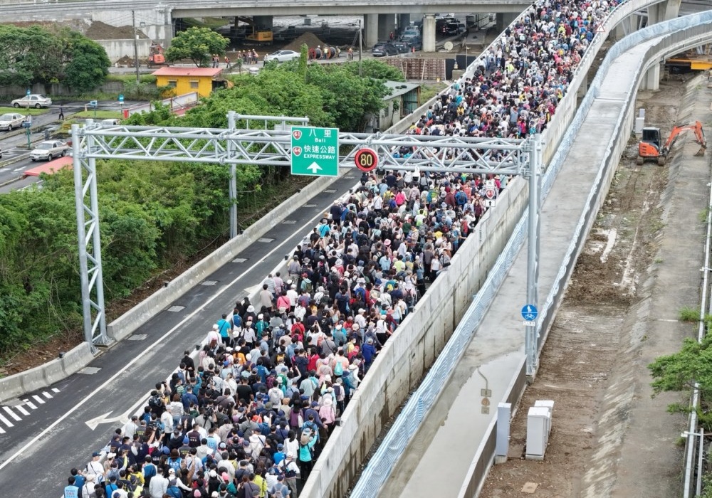 新北市政府今4月25日舉辦「好朋友來瞧橋-新北市淡江大橋健行活動」,寫下史無前例的震撼紀錄。活動全天吸引超過十萬人次湧入淡水,場面壯觀非凡。在市長侯友宜鳴槍後,上萬名幸運民眾邁開腳步,首度登上這座全台矚目的世界級斜張橋。以雙腳寫下歷史新頁的參與者難掩興奮,現場驚呼聲不斷,紛紛直呼:「這輩子一定要走這一次!」