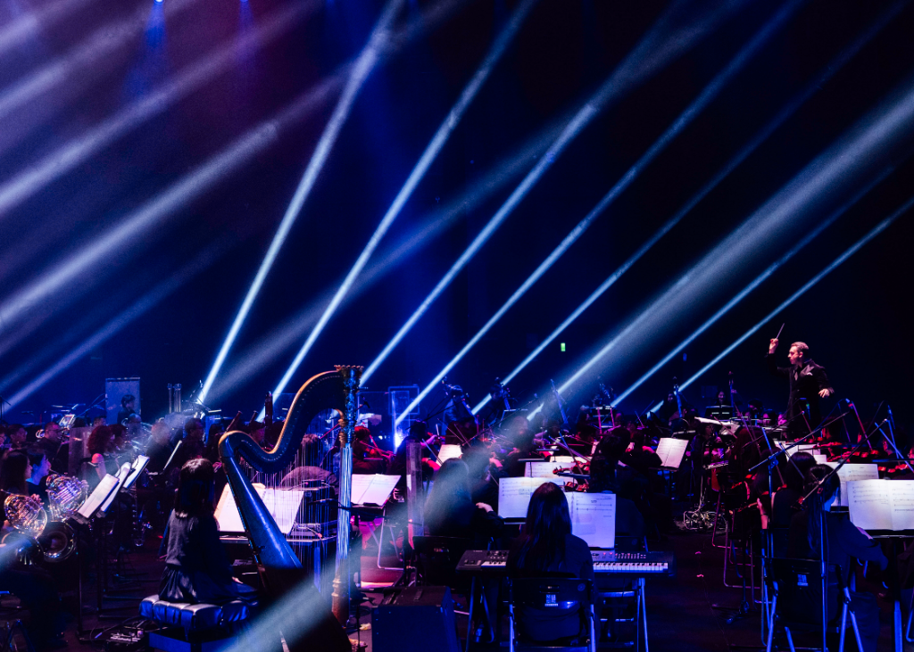 由海外首演指揮大衛.馬奧尼(David Mahoney)執棒,領軍 NTSO 國立臺灣交響樂團,當《復仇者聯盟》主題旋律響起,交響樂團那富有金屬質感的厚實銅管樂聲,瞬間填滿了北流的空間,將英雄集結的榮耀感推向頂峰。而在描繪英雄內心掙扎與告別時刻,細膩纏綿的弦樂層層疊進,勾勒出角色情感中最柔軟的一面。金紅光束與藍白盾影隨著鼓聲與旋律節奏快速切換,繽紛的光影與樂團的呼吸完美對位,讓觀眾彷彿置身於漫威宇宙的核心,與英雄並肩歷經每一場戰鬥。