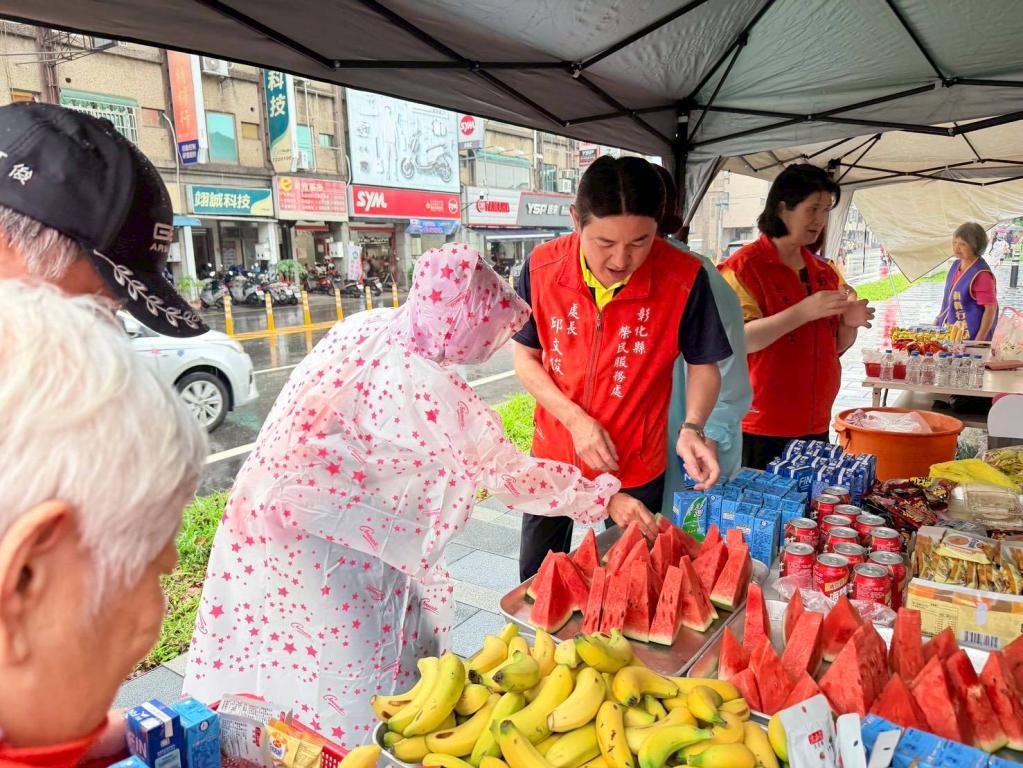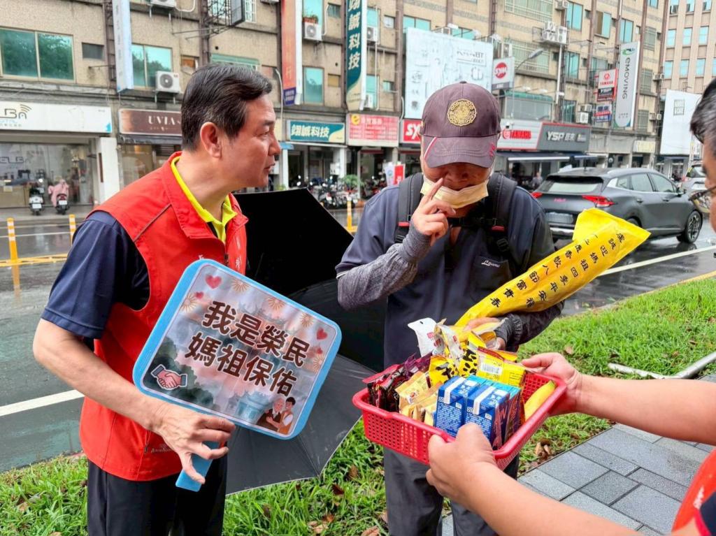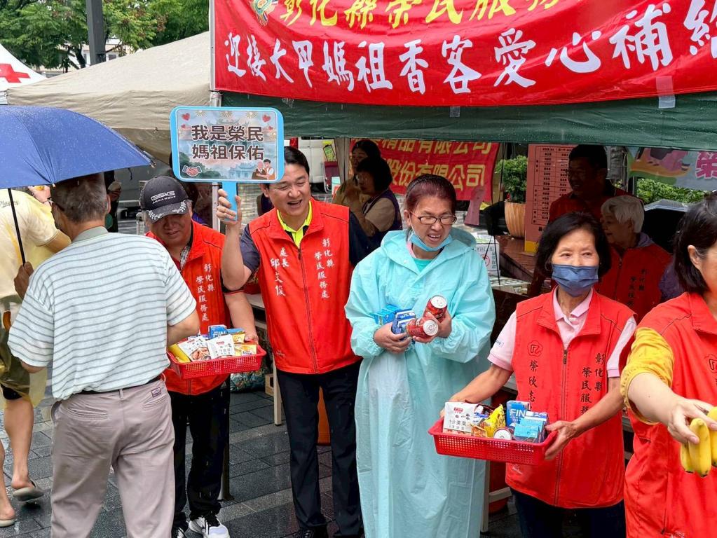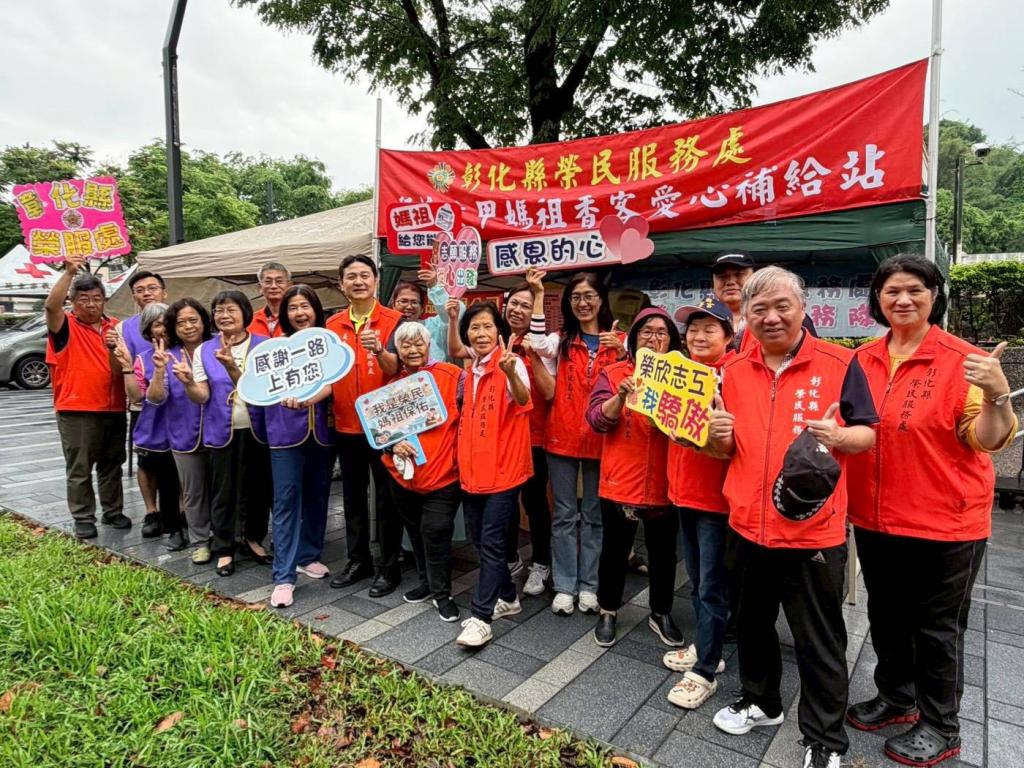 【大成報/彰化報導】隨著大甲媽祖遶境進香隊伍行經彰化,長長香路上不只有信仰力量,也處處可見人情溫暖,即使發放當天現場下起毛毛細雨,仍澆不熄服務熱情;彰化縣榮服處於彰化藝術館前設置「愛心補給站」,由榮服處同仁、榮欣志工及親友團共同募集愛心物資,免費提供飲品、點心與補給服務,為榮民眷、香客及民眾送上一份最溫暖支持。