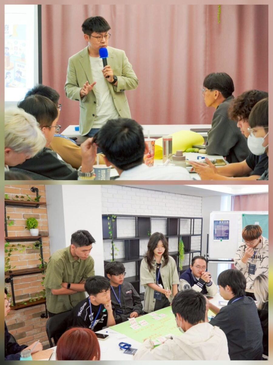 ▲講師史御成於工作坊中解說學生組織運作關鍵,並與學員互動熱絡、來自南臺灣大專校院的學生代表透過「便利貼議題徵集」方式,針對城市資源配置、公共建設及學生權益等面向提出觀察與建議。