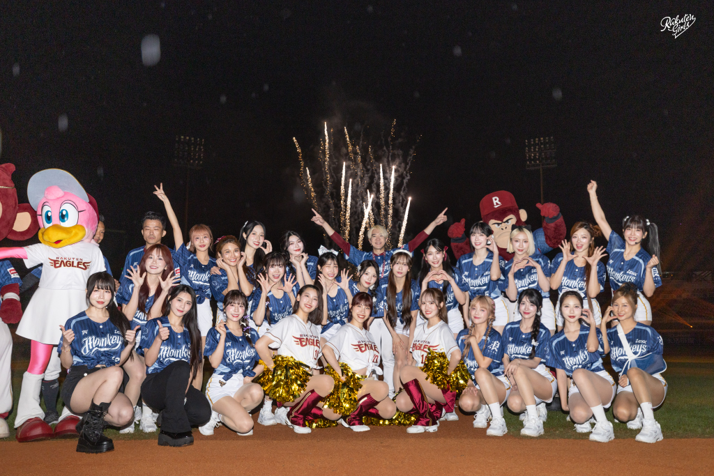 ▲ 樂天女孩和賽後不分勝利煙火。(圖:樂天桃猿)