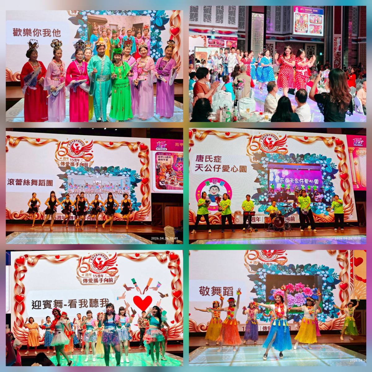活動現場節目多元輪番上陣精采絕倫演出:唐寶寶天公仔打擊樂、歡樂你我他舞蹈、滾蕾絲舞蹈團、敬舞蹈、威秀舞蹈團、原住民運動協會、小蘋果樂團及鳳甲之星霄凌⋯等豐富表演節目,融合公益與文化展演,讓關懷以多元形式呈現;壓軸登場的「超大電視機」與「一桶金」摸彩活動,更將現場氣氛推向最高潮,笑聲與掌聲不斷,為整場活動畫下熱鬧又溫馨的句點。