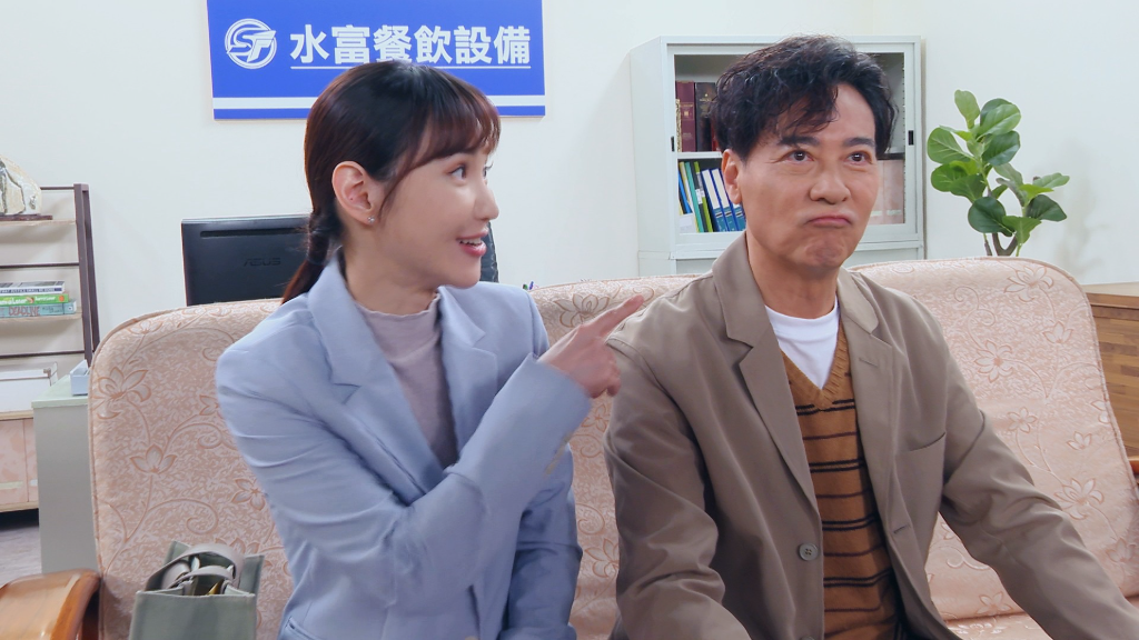 ▲ 徐千京笑虧尹昭德「位子坐太大」,兩人戲裡戲外互動逗趣,氣氛輕鬆熱。(圖:民視)