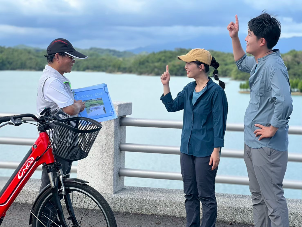 ▲ 阿龍(前)、阿蓉帶大家前往曾文水庫認識台灣水化。(圖:公視台語台)