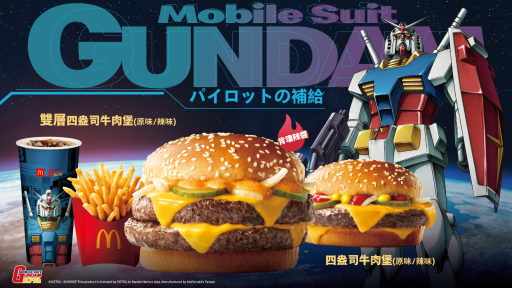 台灣麥當勞首次攜手日本經典動漫《機動戰士鋼彈》,推出一系列夢幻聯名活動,將於4月29日至5月26日全台登場。這次合作不僅帶來了深受顧客喜愛的「辣味四盎司牛肉堡」與「雙層辣味四盎司牛肉堡」的強勢回歸,還推出了獨家「鋼彈聯名特餐」,讓鋼彈迷與美食愛好者都能大呼過癮。