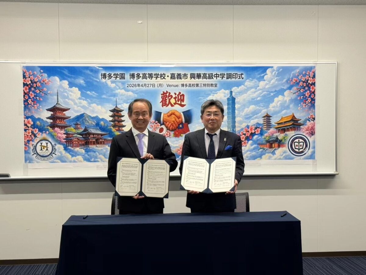 【記者 吳瑞興/嘉義市 報導】嘉義市私立興華高級中學持續推動台日雙邊教育合作,為學生拓展國際視野。興華高級中學積極拓展國際教育版圖,繼與和歌山初芝橋本高等學校、西東京調理師專門學校、國際製菓專門學校及沖繩興南學園建立合作關係後,再度與日本九州福岡地區完全中學——博多學園正式簽署合作備忘錄(MOU),締結姊妹校。博多學園為九州地區具代表性的完全中學,在升學與國際教育推動方面成果亮眼,長年培育學生進入知名大學深造,辦學績效深受肯定。雙方教育理念相近,皆重視全方位能力培養與品格教育發展,為此次合作奠定良好基礎。
