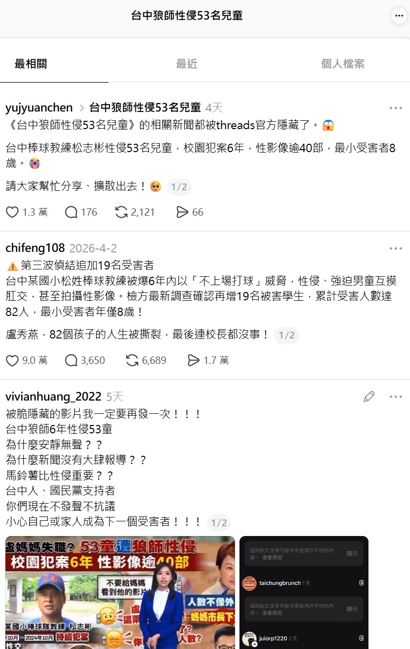 台中棒球教練松志彬性侵53名男童、拍攝逾40部性影像案,案情震驚全臺,但隨著司法程序展開,社會關注度卻呈現不尋常的迅速滑落。近日社群平台及網路討論區湧現大量質疑,認為本案不僅在犯案的6年間被校園體制掩蓋,甚至在曝光後,後續的行政究責、補償機制及制度改革,都疑似遭到「隱形降溫」,導致事件在公眾視野中迅速消失