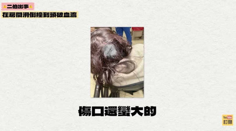 蔡阿嘎表示,事件發生於本月11日上午,當時二伯在房間內不慎滑倒,起初僅以為是一般跌倒,未料聽到二伯隨即驚喊「我的頭凹下去了」,讓他立刻提高警覺。經查看後發現,二伯頭部已出現明顯出血情形,讓蔡阿嘎嚇到立刻從床上跳起來。