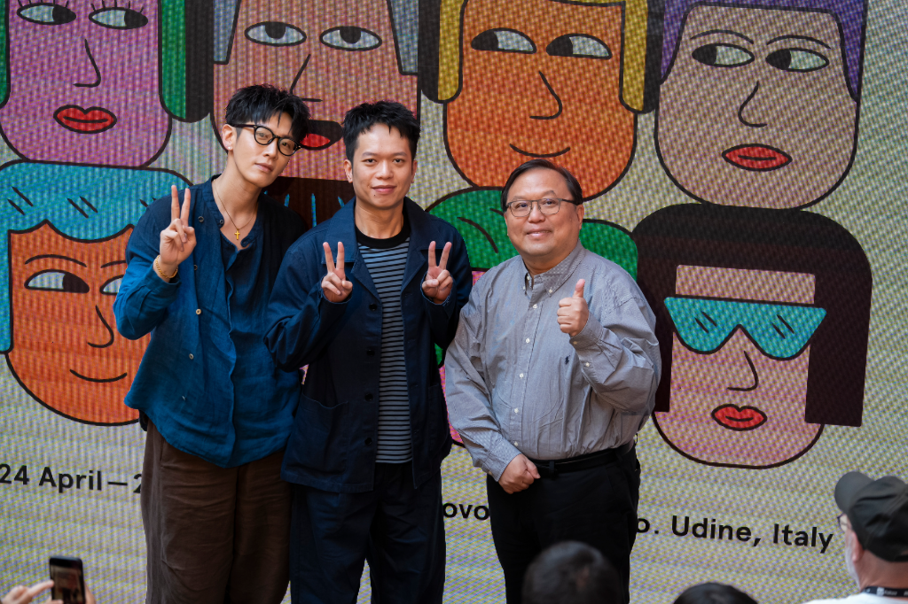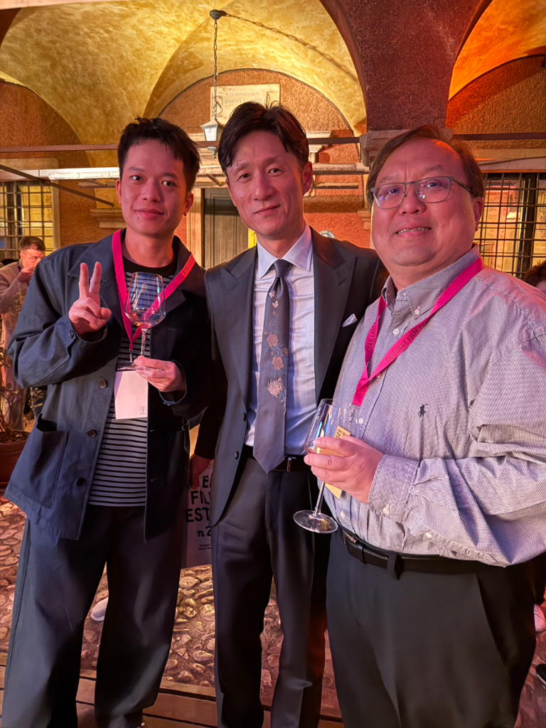 ▲ 《我未許願先吹蠟燭》男主角柯震東(左起)、導演、監製唐在揚於義大利遠東國際影展。(圖:FEFF28提供/官方攝影Alice_Durigatto)