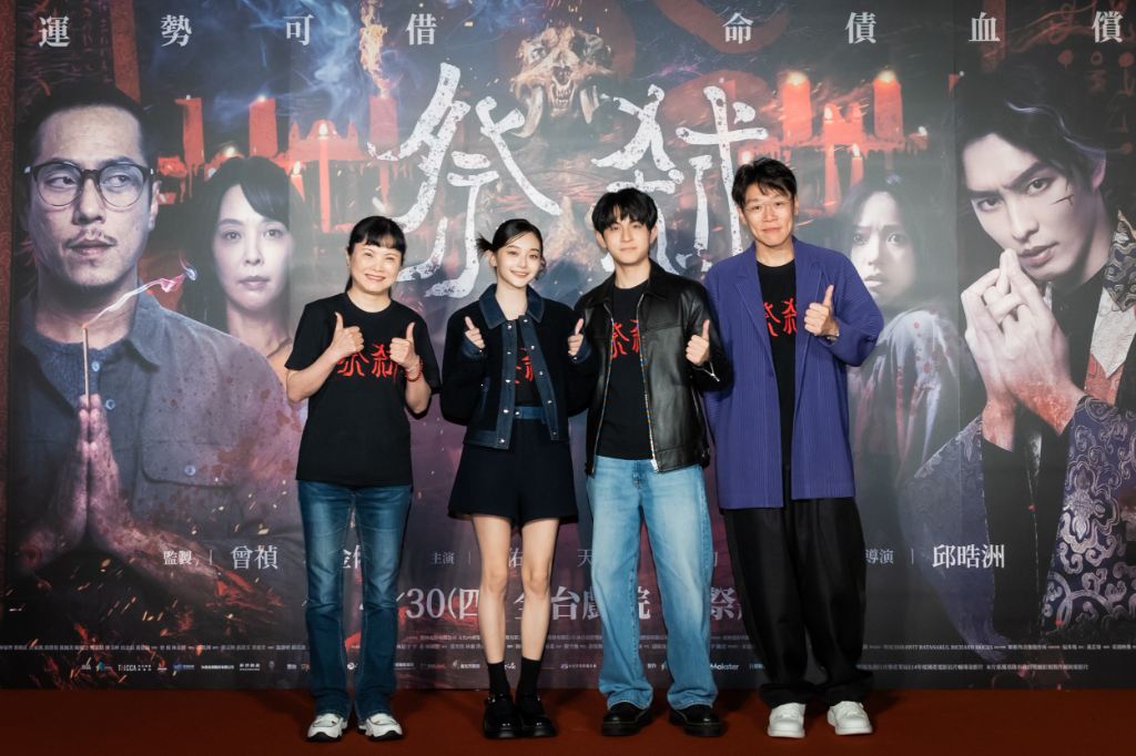 最新靈異驚悚電影《祭弒》將於4月30日全台震撼上映,今(28)日盛大舉辦首映會,監製曾禎、導演邱晧洲率演員曹佑寧、天心、莊凱勛、項婕如、樊光耀、林思宇、李杏、林暉閔、邵奕玫閃亮卡司齊聚,由「最帥驅魔人」曹佑寧現場展現「揮扇打鬼」英姿,劈開恐怖邪靈詛咒,眾人同時扯開符咒封印,預祝上映票房大賣。