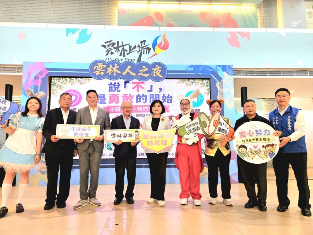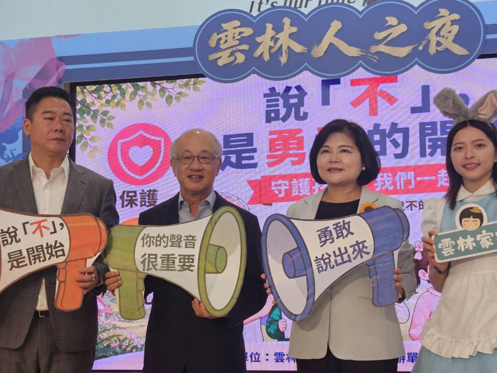 雲林縣長張麗善、雲林縣議會議長黃凱、雲林家扶主委陳燦勲、副主委吳裕田等共同呼籲,兒童少年在面對熟悉對象時,更需要被教會如何表達與保護自己;唯有孩子敢說、大人會接、社會一起做,才能建立安全友善保護網,打造安心成長環境。(于郁金翻攝/雲林家扶中心提供照片)