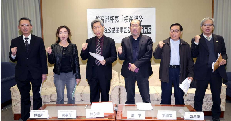 於是教育部徵詢高教工會、亞太教師代表,選出新一屆公益董事,董事長是與某財團關係密切的陳政元,他與親黃平璋的三名董事提出「引進財團、活化校地」主張,遭到教師代表黃惠芝與高教工會等幾名教授董事強力反彈。
