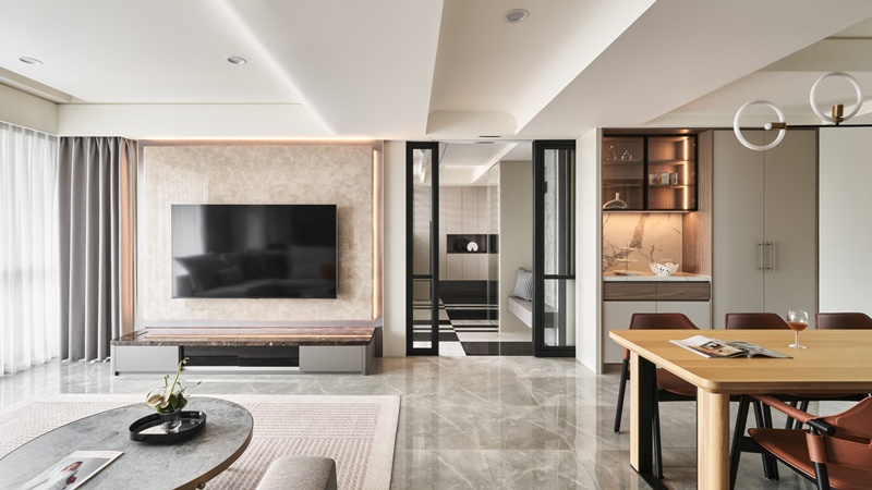 為追求永續與健康的居住承諾,空間中嚴選天然石材與環保塗料,在新北市豪宅室內設計與台中市豪宅室內設計的實踐中,樹立了綠色美學的典範。這不僅是一處棲身之所,更是一場關於材質、色調與光影的優雅對話,讓奢華不再只是物質的堆砌,而是深藏於日常細節中的幸福底蘊。
