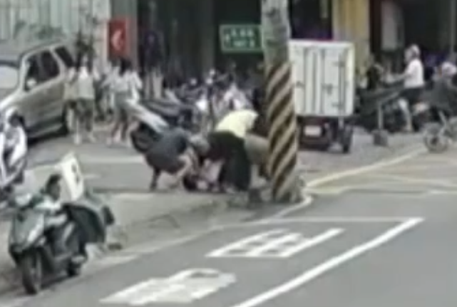 民眾合力壓制逮捕跟騷嫌犯。翻攝畫面