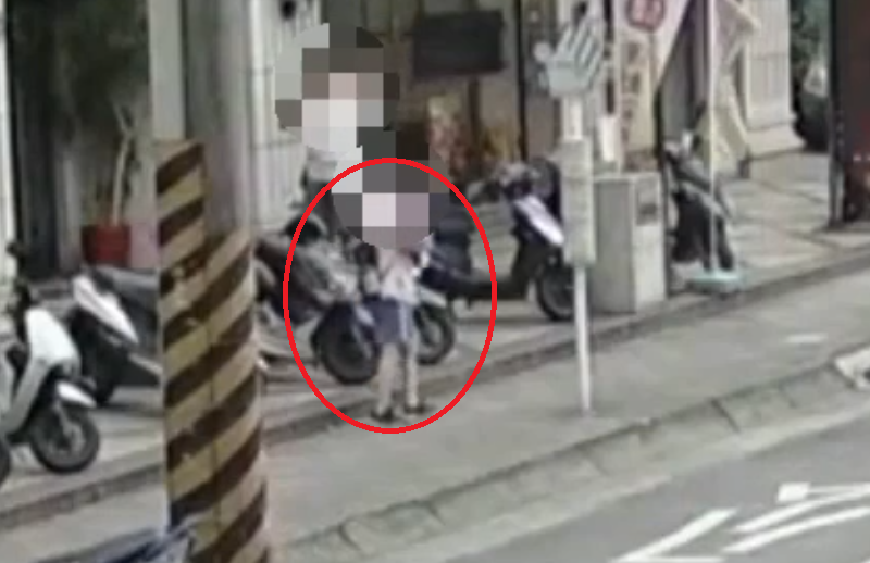 蘆洲女高中生放學遭跟騷(紅圈處),打電話向72歲外婆求救,外婆及當地里長前往制止均被嫌犯打成重傷。翻攝畫面