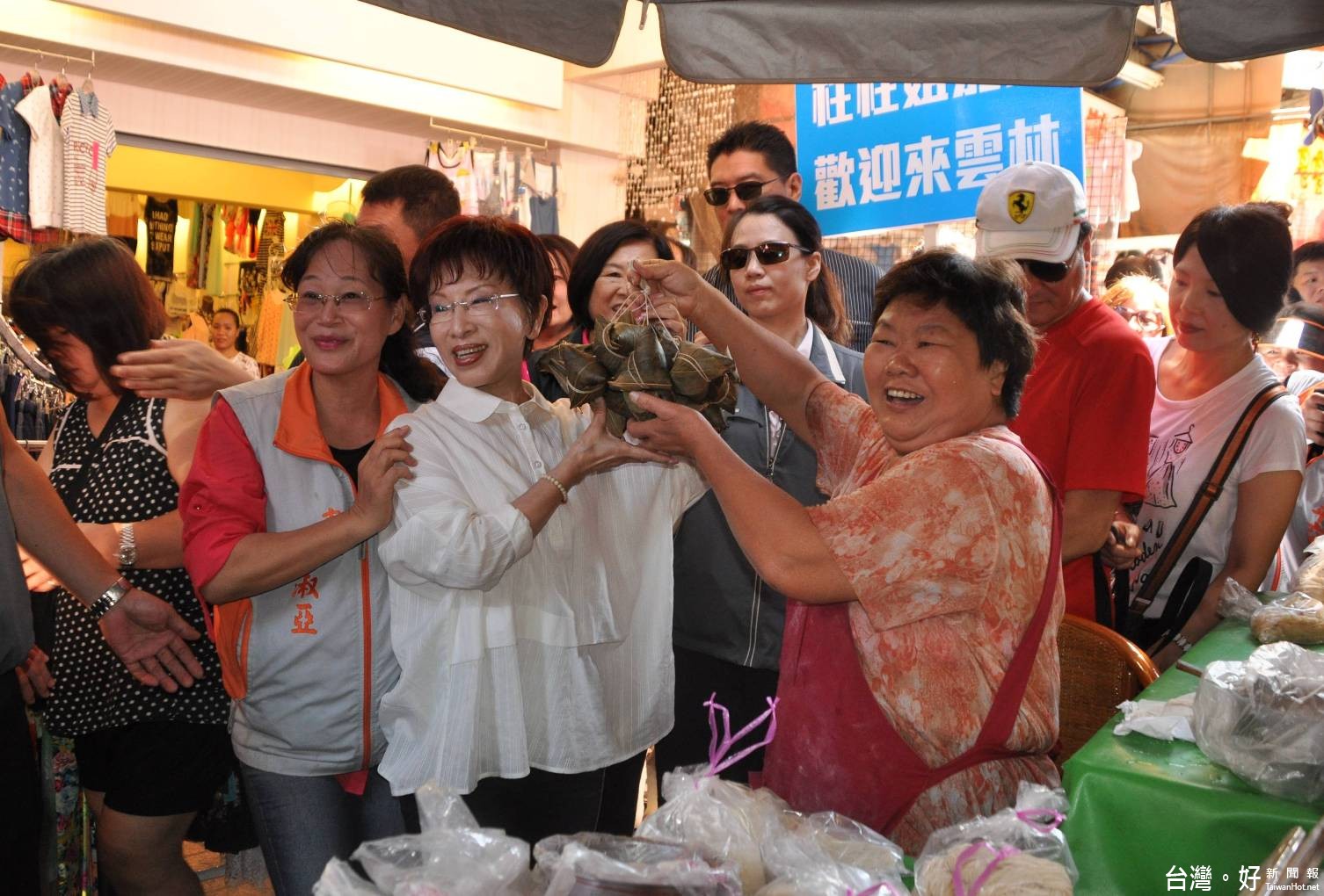 圖說:洪秀柱前往斗六市西市場掃街懇託,受到菜市場婆婆媽媽熱烈歡迎。(記者陳昭宗拍攝)