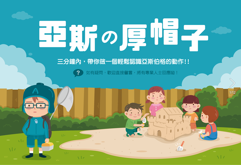 前一陣子看到一個網站,有一群醫學專業的人,一起製作了「亞斯的厚帽子」,三分鐘讓你了解亞斯柏格!如果你是家長、老師、保母……等,只要生活中會接觸到孩子,都推薦你去逛逛這個相本。