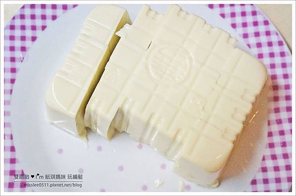 先將雞蛋豆腐倒入盤子上,這樣比較好切成平均大小的塊狀!!
