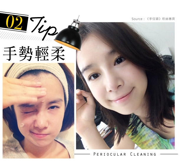 TIP 02 | 洗臉時最後一個動作輕輕帶過眼周就好!