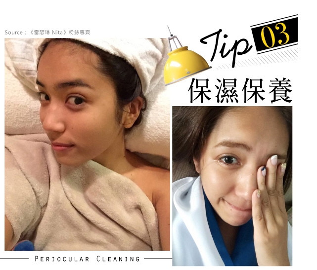 「我洗完臉之後,一定會用沾了保濕型化妝水的棉片,輕輕擦拭眼周的皮膚,這個動作可以為眼部再次清潔,也可以提供眼周肌膚水分。擦拭的範圍可以大一點,除了眼皮、睫毛根部之外,眉毛到太陽穴也都可以帶過」