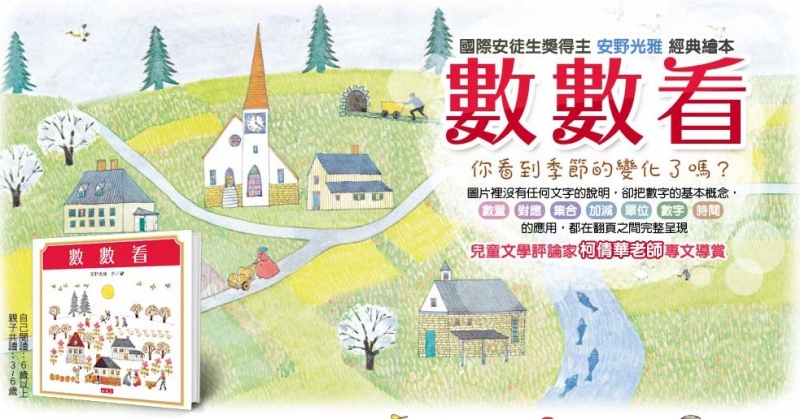 安野光雅邀請讀者展開一段數字和數數的想像旅程。他用柔和的水彩描繪出一年四季、12個月變換的風景,還有在那片土地上生活的人。在隨著時間變換的風景裡,你會發現一對一,對應、集合、組合等數學相關的概念。