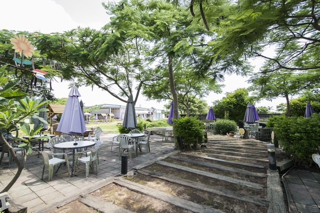 庭園戶外有規劃好的洋傘和搖椅,可容納不少遊人休憩歇腳。