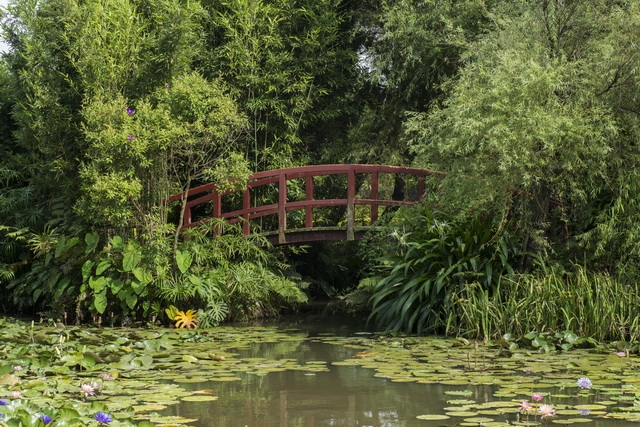 因鍾愛印象派大師莫內的《日本橋》,「莫內的花園」的店主依著畫作如實打造一處綠意池畔,將巴黎市郊的景色搬來桃園,園區乍看不大,等到深入走進才會知道裡頭的有趣。其中,圍繞在前後3座池塘的花徑,僅2人寬的走道,四周是茂盛的蕨類、花兒,視野時而開闊時而隱蔽,像一座迷宮,若不細心留意還真會迷失方向。