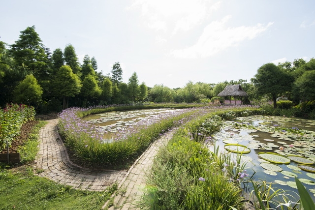 與名畫如出一轍的景致,美在荷葉與園藝的綠意層次。