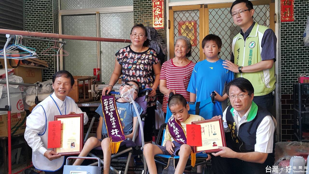副市長顏純左說,許名洋、許耿豪兄弟,用愛挑戰罕病,在爸媽勇於承擔的不即不離的愛中,熱愛生命、活出希望,曾先後榮獲市長獎鼓勵,也盼望八里粉塵氣爆受傷的大哥哥大姊姊們——揮別陰霾、走向陽光,不愧為「黏多醣小勇士」,榮獲「2015年周大觀抗病圓夢助學金」。