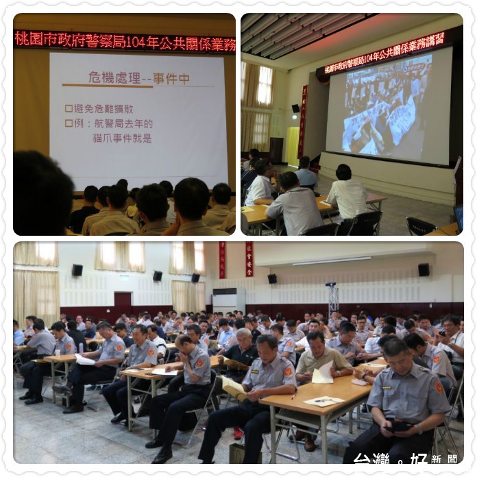 為強化警察同仁輿情應處能力,增進與媒體良性溝通互動,桃園市政府警察局特於104年8月4日辦理「公共關係業務講習」,透過課程學習,提升警察同仁面對媒體的應對能力,進而傳遞警察正面訊息。