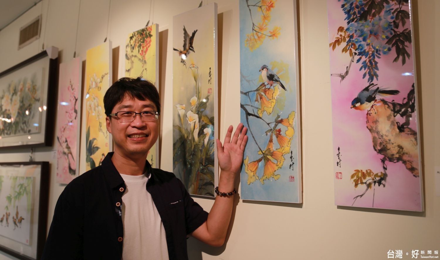 嶺南派畫家王金村老師以「觀喜」為題,於葫蘆墩文化中心展出兩年新作,內容涵蓋花鳥、山水、蟲魚、走獸。秉持形神兼備、以彩賦形的傳統嶺南畫派特色,運用不同的題材與技法,作品中主角的神情與姿態各有意趣,呈現全新的視覺感受。