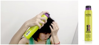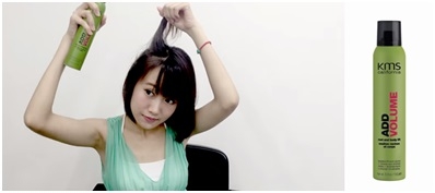 拆掉髮捲後,用吹風機調整頭髮線條,最後再噴上『KMS 輕鬆玩霧』做定型!