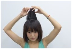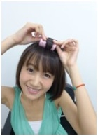 在後腦處,以半圓為範圍抓起適量頭髮,將髮捲捲到髮根後稍微往下壓,固定髮捲。再抓起適量上層瀏海利用髮捲捲起,再用吹風機加熱髮捲5~10秒後待冷卻。
