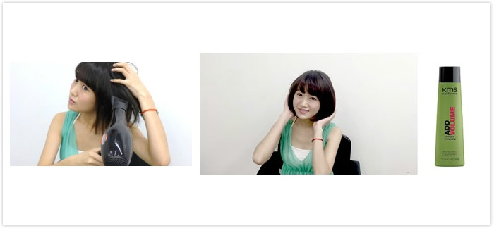 造型之前,使用『KMS豐盈洗髮精』,於吹乾時頭髮即自然呈現豐厚感,蓬鬆度增加40%!